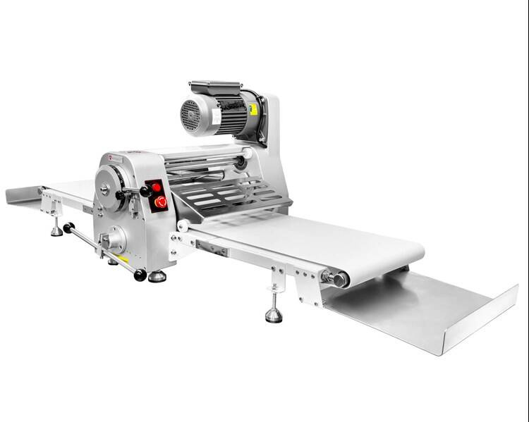 • Profesjonalna nastawna wałkowarka taśmowa, idealna do rozwałkowywania ciasta francuskiego, półfrancuskiego, pierogowego, kruchego