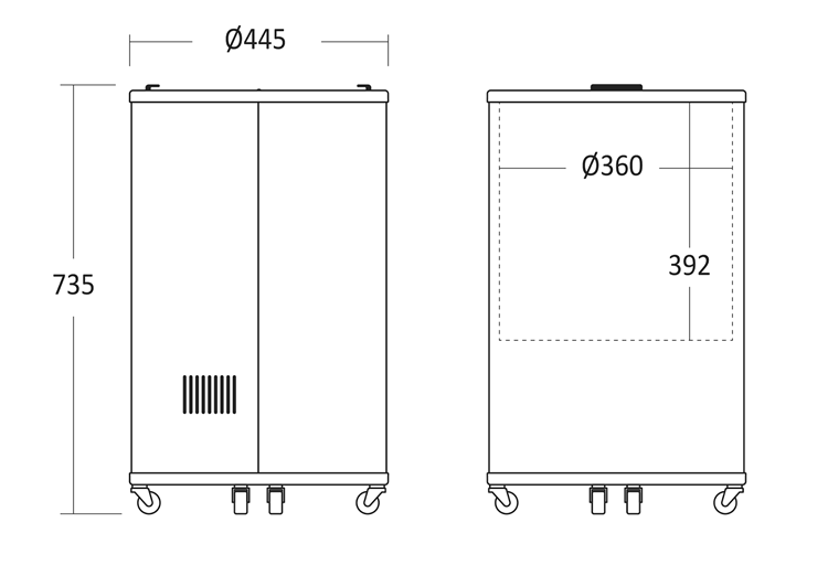 - Wymiary zewnętrzne [mm]: 445x445x735