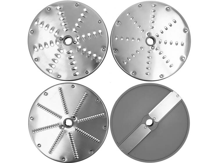 W zestawie znajduje się 5 wymiennych tarcz tnących o średnicy 205 mm umożliwiających krojenie na: