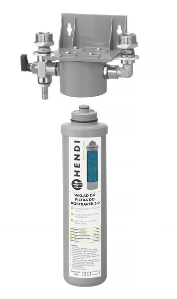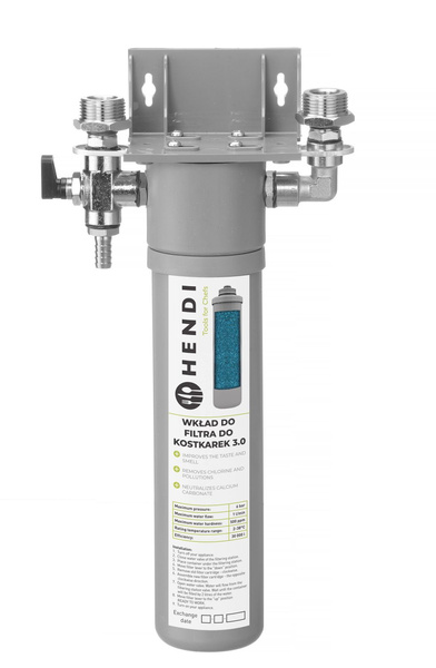 Filtr do kostkarek HENDI 3.0 to kompletny system filtracji wody, zaprojektowany specjalnie do zastosowania w kostkarkach i łuskarkach podblatowych. Zapewnia wysoce skuteczne oczyszczanie wody, co zwiększa klarowność lodu, poprawia smak i zapach oraz zapobiega osadzaniu się kamienia. Filtr można zamontować na ścianie lub ustawić na podłożu, co ułatwia elastyczne dopasowanie do dostępnej przestrzeni.