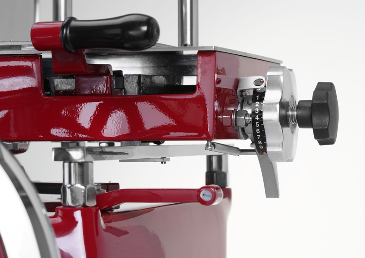 • Regulacja grubości krojenia: Możliwość ustawienia grubości krojenia od 0 do 2,5 mm (9 pozycji), co pozwala na precyzyjne dostosowanie do różnych produktów.
