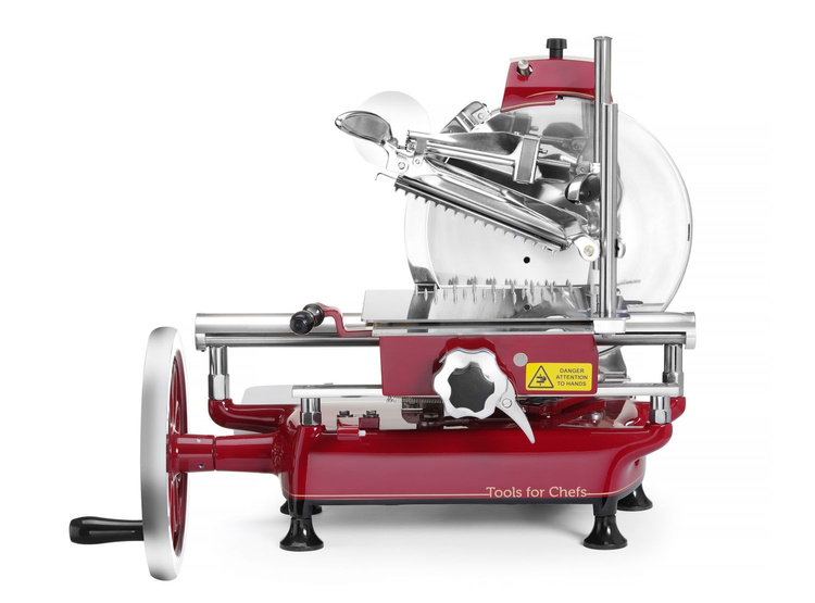• Manualna obsługa: Krajalnica napędzana korbką, co umożliwia jej użytkowanie w miejscach bez dostępu do prądu. Idealna do kawiarni, bistr, czy na pikniki.