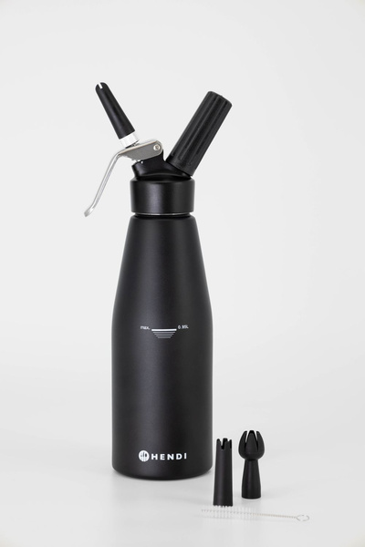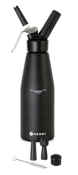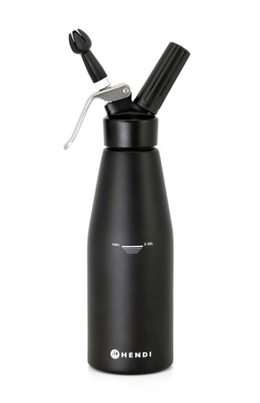 Syfon do bitej śmietany HENDI Kitchen Line to elegancki i funkcjonalny sprzęt, który umożliwia łatwe przygotowanie bitej śmietany oraz innych deserów. Dzięki swojej matowej czarnej butelce i aluminiowym elementom, syfon łączy nowoczesny design z praktycznością.