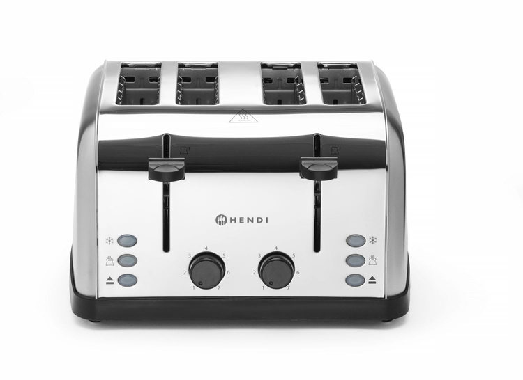 Toster na 4 tosty, 240V/1500W, HENDI to urządzenie zapewniające wygodę, funkcjonalność i nowoczesny design, idealne do codziennego użytku w każdym domu lub gastronomii.