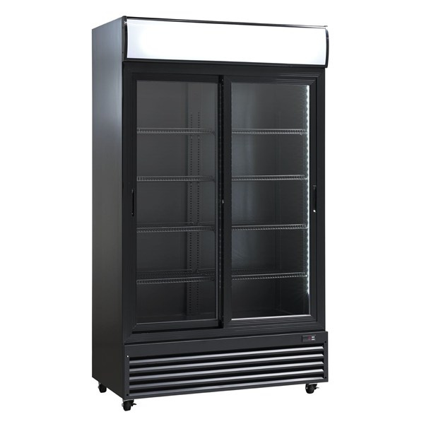 • Szafa chłodnicza przeszklona SD1002BSLE | drzwi przesuwne | czarna | 670l