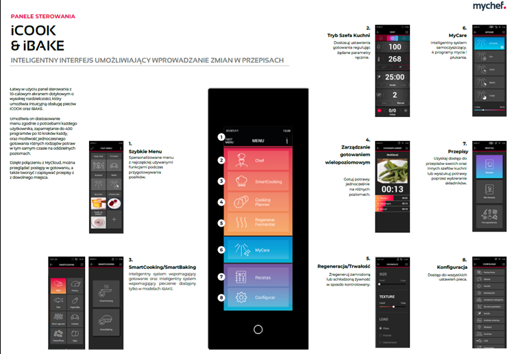 - MySmartCooking. Inteligentny system gotowania. Wybierz produkt, rodzaj obróbki , dostosuj wielkość, stopień przyrumienienia i ustawienia punktowe, a piec sam obliczy parametry, aby uzyskać doskonały rezultat