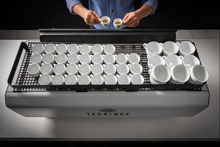 - Każda grupa wyposażona w wyświetlacz dotykowy 4,3’’ do zarządzania wszystkimi ustawieniami urządzenia i alertami, np. temperaturą zaparzania kawy, temperaturą zaparzania herbaty, ciśnieniem w bojlerze, w komorze zaparzającej, funkcją PID, podgrzewaczem filiżanek ect.