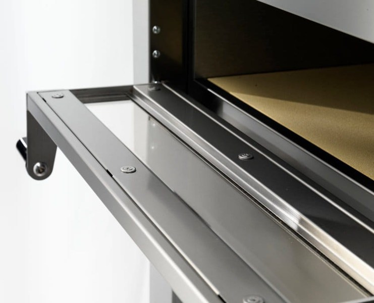 - Komora wyłożona jest płytą z kordierytu, który bardzo dobrze absorbuje i równomiernie rozprowadza ciepło oraz zapewnia doskonałą cyrkulację powietrza pod pizzą. Dzięki temu ciasto jest idealnie wypieczone