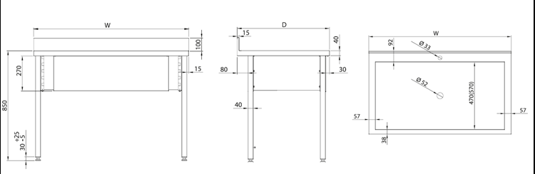 - Standardowo wszystkie stoły robocze mają wysokość 850 mm