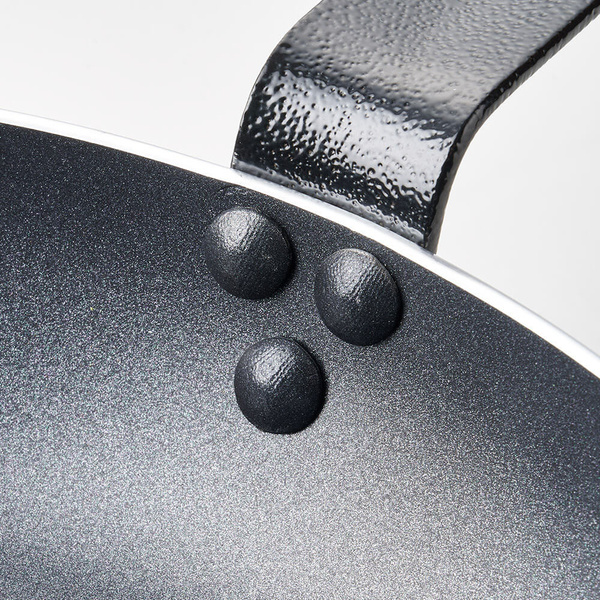 - dobre przewodzenie ciepła dzięki obudowie z aluminium powłoka nieprzywierająca do wszystkich typów kuchni, w tym indukcyjnej rączka stalowa wykonana ze stali epoksydowanej, z otworem do zawieszania