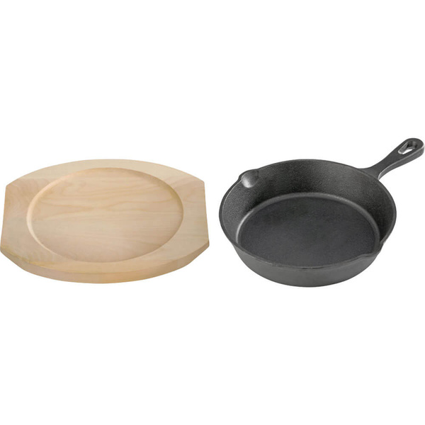 - patelnię żeliwną można używać na standardowych palnikach gazowych i elektrycznych, piekarnikach oraz otwartym ogniu idealne do przyrządzania oraz serwowania potraw podstawa drewniana w zestawie