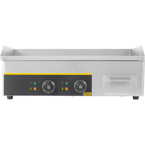 • 2 strefy grzewcze obudowa wykonana ze stali nierdzewnej płyta grzewcza 1/2 gładka; 1/2 ryflowana szufladka na tłuszcz płynna regulacja temperatury 50-300°C bezpiecznik zapobiegający przegrzaniu się urządzenia