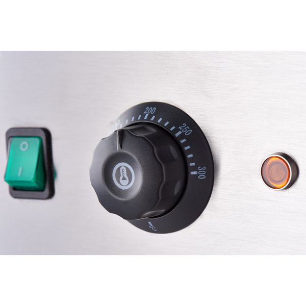 - przeznaczona do smażenia i duszenia potraw ręczny przechył misy w celu zlewania oleju powierzchnia robocza 0.27m2 płynna regulacja temperatury termostat zabezpieczający z ręcznym resetem obudowa i misa wykonana ze stali nierdzewnej wydajność ok. 100