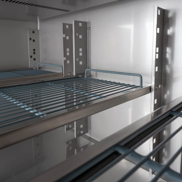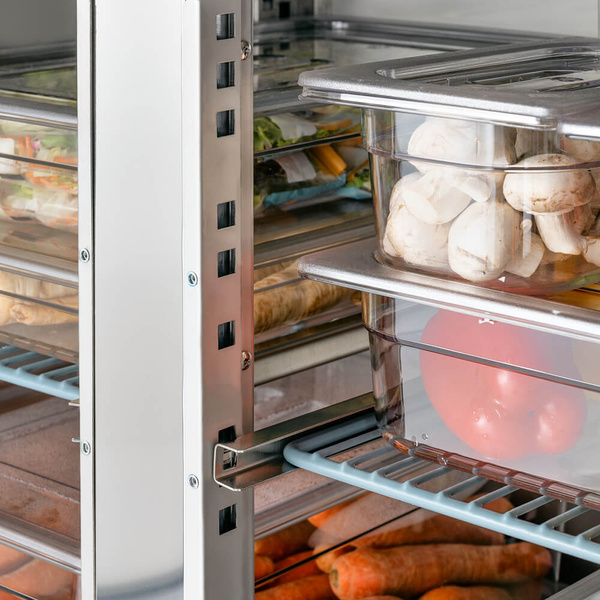 urządzenia posiadające niską klasę energetyczną czynnik chłodniczy R290 obudowa ze stali nierdzewnej automatyczne odszranianie/rozmrażanie elektroniczny sterownik z wyświetlaczem temperatury samodomykające się drzwi regulowane nóżki 1 półka GN 1/1 w standardzie na komorę