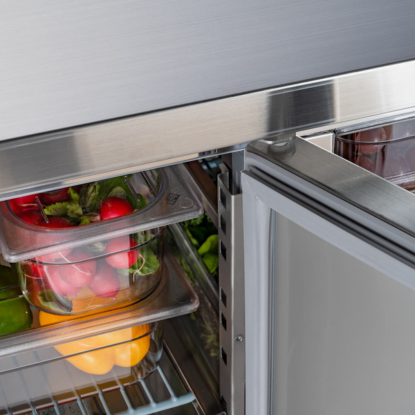 urządzenia posiadające niską klasę energetyczną czynnik chłodniczy R290 obudowa ze stali nierdzewnej automatyczne odszranianie/rozmrażanie elektroniczny sterownik z wyświetlaczem temperatury samodomykające się drzwi regulowane nóżki 1 półka GN 1/1 w standardzie na komorę