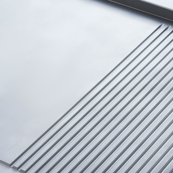 - konstrukcja wykonana ze stali nierdzewnej powierzchnia robocza płyty 4400 cm2 dwie oddzielne strefy pracy otwór na odpadki w płycie pojemnik na odpadki i tłuszcz wysokie ranty boczne oraz tylny kontrolka pracy oraz zasilania zakres pracy do 300°C