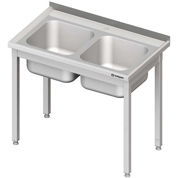 Stół stalowy bez półki ze zlewem 2-komorowym, skręcany, blat tłoczony, 1000x600x850 mm 615106 STALGAST