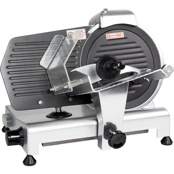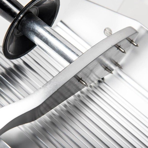 przeznaczona do wędlin i serów podstawa wykonana z lakierowanego aluminium osłona noża, taca podawcza oraz ruchoma ścianka wykonane są z anodowanego aluminium osłona noża z wgłębieniami pokryta powłoką zapobiegającą przywieraniu produktów wentylowany silnik ostrzałka regulowane nóżki maksymalna grubość cięcia 10 mm wyposażona w nieprzywierający nóż pokrętło regulacji grubości krojenia urządzenie posiada bardzo ostry nóż - prosimy zachować ostrożność podczas krojenia i czyszczenia średnica noża 250 mmGwarancja 12 miesięcy